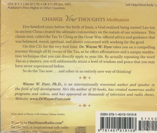 Five hundred years before the birth of Jesus, a God-realized being named Lao-tzu in ancient China created the ultimate commentary on the nature of our existence. This classic text, called the Tao Te Ching or the Great Way, offered advice and guidance that was balanced, moral, spiritual, and always concerned with working for the good.On this program, for the very first time, Dr. Wayne W. Dyer takes you on a compelling journey through all 81 verses of the Tao, as he offers affirmations and a unique meditation technique that you can directly apply to your life. By actually repeating the word Tao as a mantra, you will subliminally attain a level of wisdom and peace that you may have never experienced before. Do the Tao now...and usher in an entirely new way of thinking!