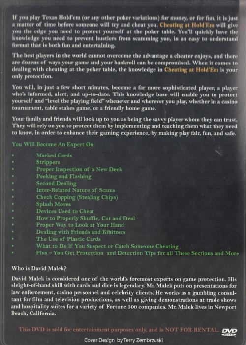 Cheating At Hold'Em Essentials DVD VIDEO EDUCATIONAL poker game protection Malek