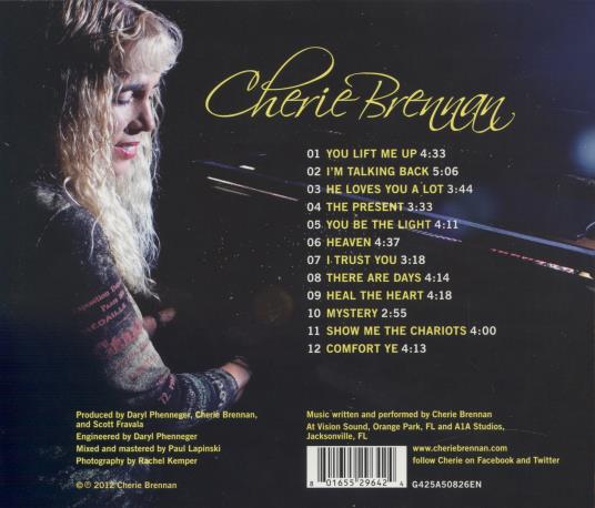 Cherie Brennan is a Christian pop artist who delivers messages of God's great love through her music. Produced by Daryl Phenneger, Cherie Brennan, and Scott Fravala. Engineered by Daryl Phenneger. Mixed and mastered by Paul Lapinski.