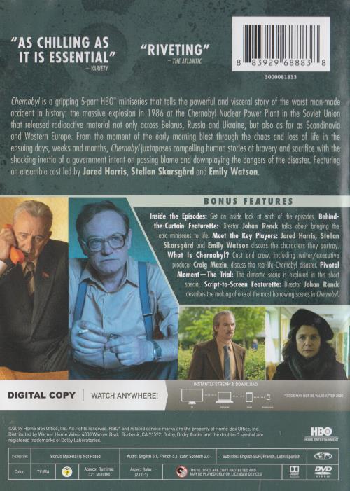 Chernobyl is a gripping 5-part HBO miniseries that tells the powerful and visceral story of the worst man-made accident in history: the explosion in 1986 of the Chernobyl Nuclear Power Plant in the Soviet Union that released radioactive material not only across Belarus, Russia, and Ukraine, but also as far as Scandinavia and Western Europe. From the early morning blast through the chaos and loss of life in the ensuing days, weeks, and months, Chernobyl exposes the bravery and sacrifice within the shackling inertia of a government pushing blame and downplaying the dangers of the disaster. Featuring an ensemble cast led by Jared Harris, Stellan Skarsgard, and Emily Watson.