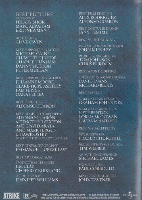 Children Of Men FYC DVD VIDEO MOVIE dystopian thriller Clive Owen Alfonso Cuaron
