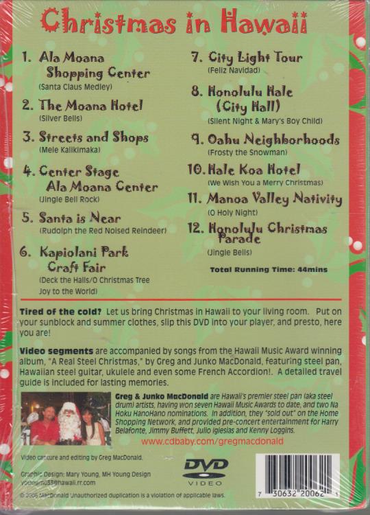 Tired of the cold? Let us bring Christmas in Hawaii to your living room. Put on your sunblock and summer clothes, slip this DVD into your player, and presto, here you are!