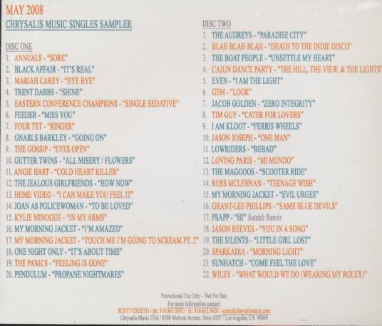 CHRYSALIS MUSIC SINGLES SAMPLER: MAY 2008 PROMO 2-DISC SET