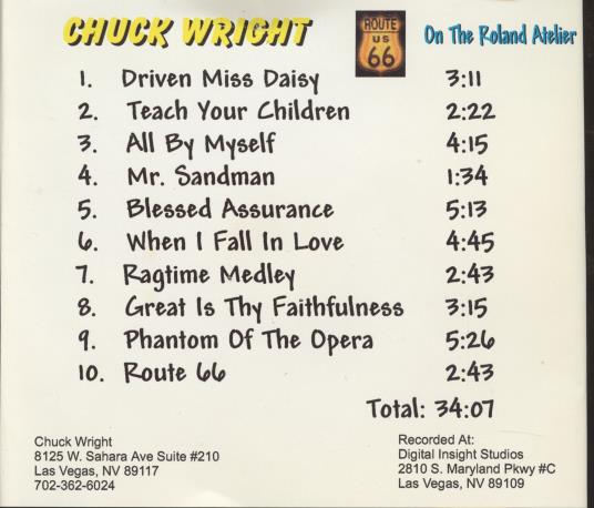Chuck Wright: On The Roland Atelier MUSIC AUDIO CD classic oldies organ piano!