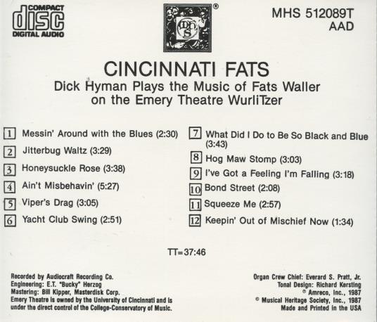 **Cincinnati Fats: Dick Hyman plays the music of Fats Waller on the Emery Theatre Wurlitzer**
