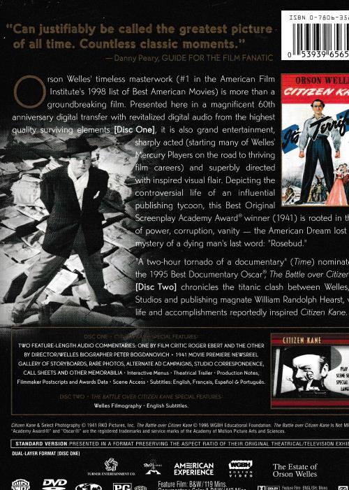 CITIZEN KANE is Orson Welles's greatest achievement--and a landmark of cinema history. The story charts the rise and fall of a newspaper publisher whose wealth and power ultimately isolates him in his castle-like refuge. The film's protagonist, Charles Foster Kane, was based on a composite of Howard Hughes and William Randolph Hearst--so much so that Hearst tried to have the film suppressed. Every aspect of the production marked an advance in film language: the deep focus and deeply shadowed cinematography (from Gregg Toland); the discontinuous narrative, relying heavily on flashbacks and newsreel footage (propelled by a script largely written by Herman L. Mankiewicz); the innovative use of sound and score (sound by Bailey Fesler and James G. Stewart, music composed and conducted by Bernard Herrmann); and the ensemble acting forged in the fires of Welles's Mercury Theatre (featuring the film debuts of, among others, Joseph Cotten, Everett Sloane, and Agnes Moorehead). Every moment of the film, every shot, has been choreographed to perfection. The film is essential viewing, quite possibly the greatest film ever made and, along with THE BIRTH OF A NATION, certainly the most influential.
