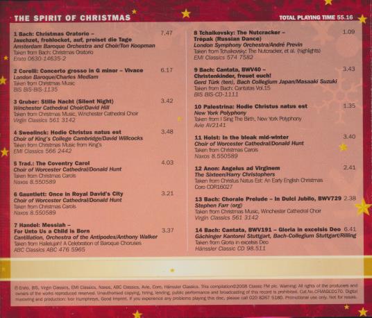 14 Christmas classics from carols to cantatas. Total playing time 55.16.