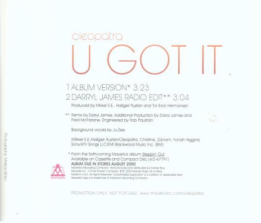 Cleopatra: U Got It PROMO w/ Artwork MUSIC AUDIO CD Darryl James Radio Mix album