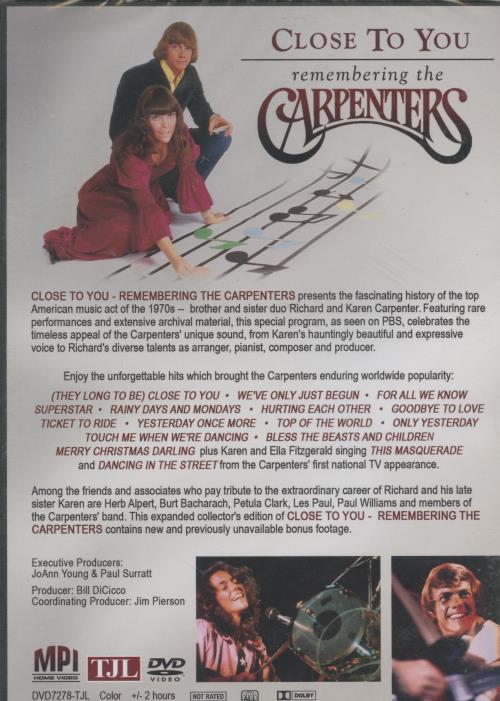 This expanded collector's edition of CLOSE TO YOU - REMEMBERING THE CARPENTERS contains new and previously unavailable bonus footage.