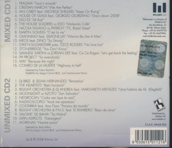 Selected by Fabio Bartolini (CD1) and Bob Salton (CD2). Edit & Mix by Sergio Cerruti @ JE - Just Entertainment Roma. (p) & (c) 2008 Ritmica Srl. Distributed by Halidon Srl.