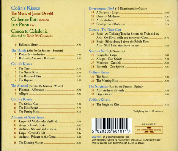 Concerto Caledonia, David McGuinness, Catherine Bott, Iain Paton, James Oswald: Colin's Kisses: The Music of James Oswald