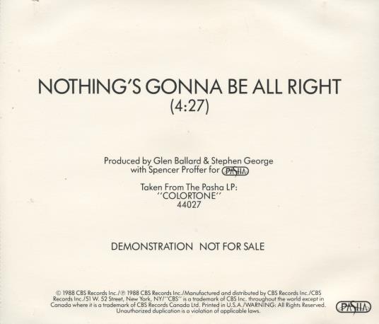 Colortone: Nothing's Gonna Be All Right PROMO MUSIC AUDIO CD 80s rock hair band