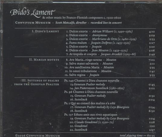 Convivium Musicum: Dido's Lament MUSIC AUDIO CD franco-flemish composers SEALED