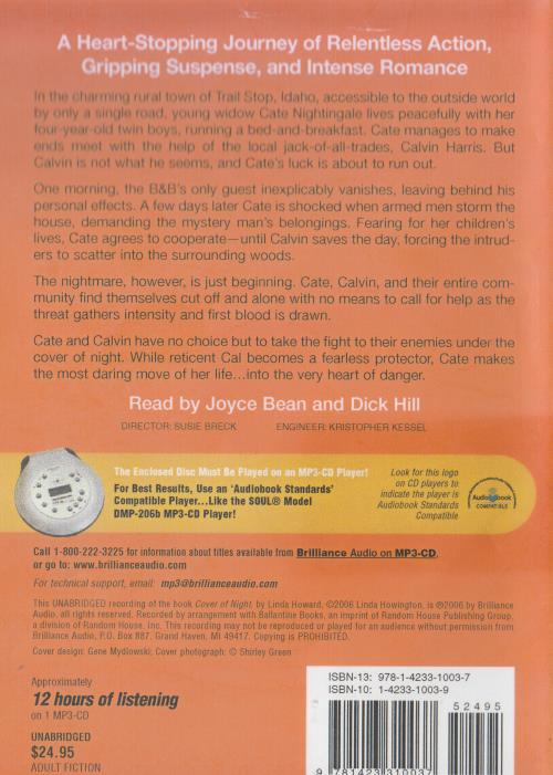 Cover Of Night Linda Howard Unabridged MP3 AUDIO BOOK CD romantic suspense drama