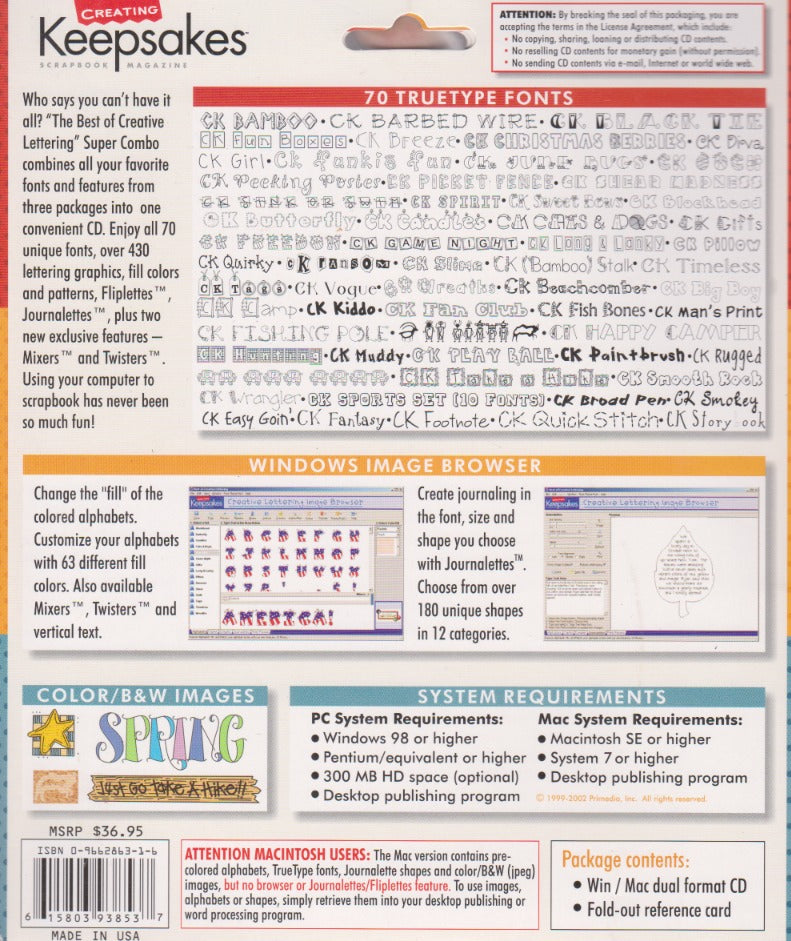 Creating Keepsakes: The Best Of Creative Lettering Super Combo PC CD bonus fonts