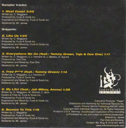 Crisis: Sampler PROMO w/ Artwork MUSIC AUDIO CD Individual Records hip hop album