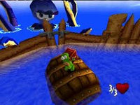 To help you in your quest, Croc has returned with some from the original game. His arsenal includes the ability to jump, attack, side step, climb, push, pick up, throw, triple-jump, flip-jump, Gummi Savers jump, swing on monkey bars, swim, use a mine cart, boat, snowball, hot air balloon, carts, glider, or a plane. He can also swing on ropes, grab balloons, or use Clockwork Gobbos. Is there anything this cute little crocodile can't do?