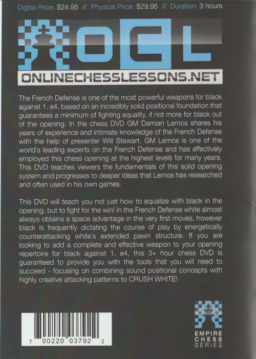 Learn Chess with Grandmaster Damian Lemos DVD VIDEO French Defense Will Stewart
