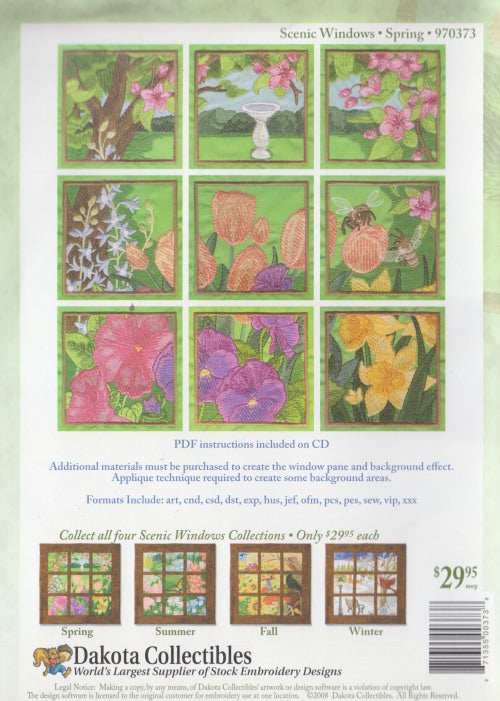 Dakota Scenic Windows Spring PC CD EMBROIDERY DESIGN COLLECTION 9 patterns craft