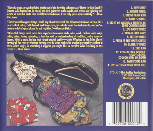 Folk guru Dave Van Ronk calls Dakota Dave Hull "One of the best guitarists in the world." Now you can judge for yourself. BAND_MEMBERS: Peter Ostroushko (mandolin, fiddle), Sandy Njoes (bass), Butch Thompson (piano, clarinet), Bruce Allard(trumpet), Steve Sandberg (tuba), Dan Newton (accordian), Marc Anderson (percussion) and Jay Johnson (timpani, whistles)