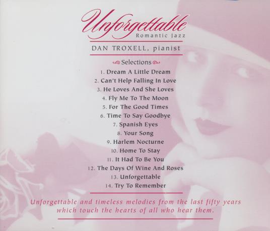 Dan Troxell: Unforgettable Romantic Jazz MUSIC AUDIO CD solo jazz piano! 2004