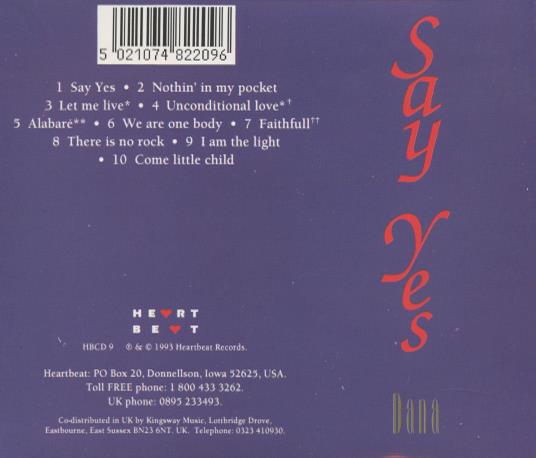 Dana: Say Yes MUSIC AUDIO CD 90s Christian inspirational gospel 1993 Heartbeat