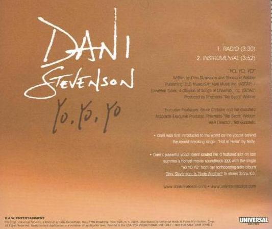 Dani Stevenson: Yo, Yo, Yo PROMO Music CD Nelly True Instrumental 2tk w/ Artwork