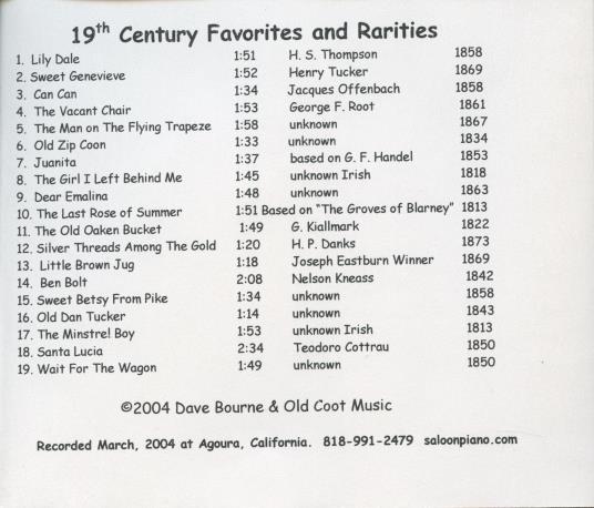 Dave Bourne: 19th Century Favorites And Rarities MUSIC AUDIO CD piano oldies '04