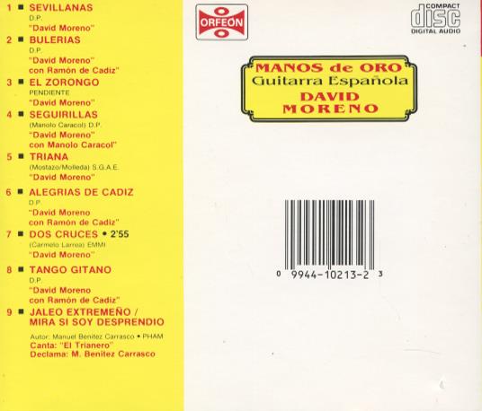 David Moreno: Andalucia MUSIC AUDIO CD latin guitar 1991 Manos de Ora Guitarra