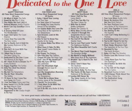 READER'S DIGEST -- DEDICATED TO THE ONE I LOVE: GREAT ROMANTIC HITS OF THE ROCK ERA -- Various Artists -- 4-CD SET