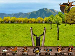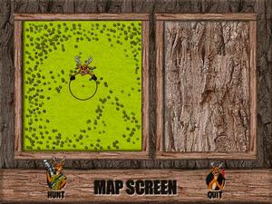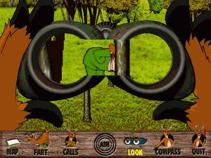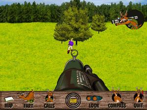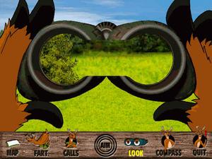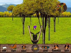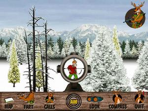 There are three hunting areas in which to track your prey, including springtime in Connecticut, snowy Minnesota in the winter, and West Virginia during the fall season. After entering each hunting area, a map screen pops up. An arsenal of "stalking devices" is available and includes such goodies as deer farts (to "smoke" out your prey), binoculars and scoped rifles, and over a dozen "hunter calls," such as "Free Beer Here," or "Help, I'm naked and I have a pizza!"