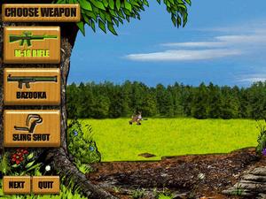A parody of the popular game Deer Hunter, Deer Avenger puts you in the role of the deer -- and it's his turn to take a little vengeance on the pesky humans who seem to come after him each fall. You have a choice of three weapons when you're hunting your redneck prey: the M-16, the bazooka, and the slingshot, which uses "special deer pellets" (hard or soft deer poop).