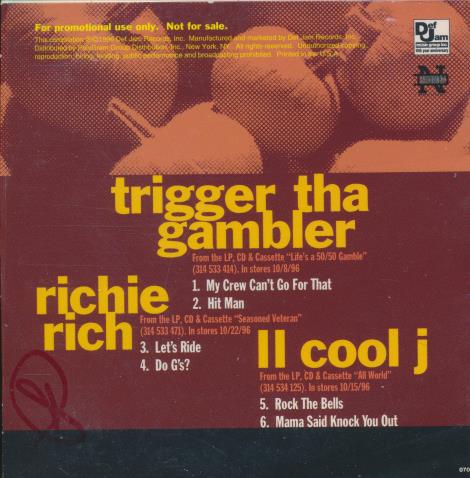 This October sales CD sampler is a promotional compilation from Def Jam Records featuring highlights from their fall 1996 roster. It includes cuts by Trigger Tha Gambler, Richie Rich and LL Cool J taken from their respective albums released that season. The collection showcases a mix of streetwise gangsta rap and classic hip hop production representative of mid-90s Def Jam releases. The sampler gathers standout singles and album tracks intended for radio and industry promotion.