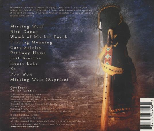 Denise Johanson delivers a sublime performance of original music on the Native American flute, evoking the ancestral voices of long ago. Infused with the ancestral voices of long ago, CAVE SPIRITS is an original inspired solo flute album of exquisite richness, evoking an undeniable sense of the spirit and energy of our Native American ancestors.