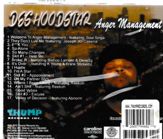 Des Hoodstar: Anger Management w/ Artwork MUSIC AUDIO CD gangsta hip hop SEALED