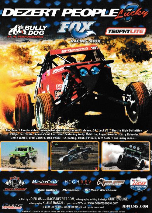 JD Films is back with our seventh release, Dezert People "Lucky 7". Shot in HD in Baja, California, Nevada and Australia. Featuring Andy McMillin, Roger Norman, Larry Roeseler, Jesse James, Brad Gallard, Dan Vance, Robbie Pierce, and many more…