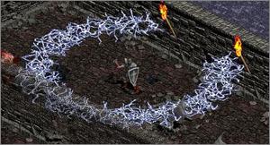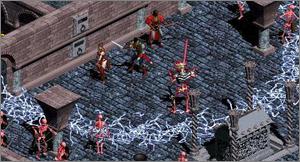 The intricate town and many dungeon levels in Diablo are dark, cold and scary. You do not want to be here. Your instincts are screaming at you to turn and run but your courage is holding you firm. The two-handed broad sword you hold in your hands -- just one of over 40 weapons -- backs up your courage and demands that you to stay. Sounds bounce off the dense stone walls making it next to impossible to judge the location of your enemies in this unforgiving dungeon. The magic spells you have learned in your travels are useless against these unseen enemies.