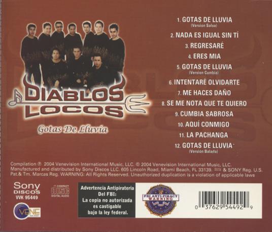 Diablos Locos: Gotas De Lluvia MUSIC CD latin cumbia salsa dance 2004 Vanevision
