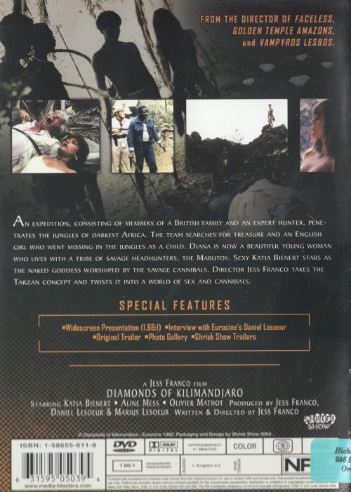 Diamonds Of Kilimandjaro DVD VIDEO MOVIE Jess Franco jungle adventure cult film