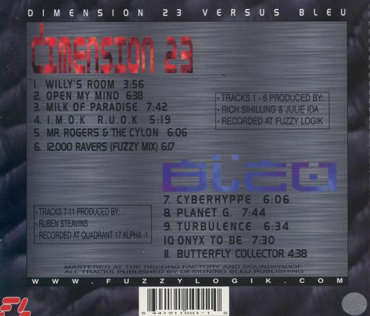 Dimension 23 Versus Bleu MUSIC AUDIO CD electronic trance house 1997 Fuzzy Logik