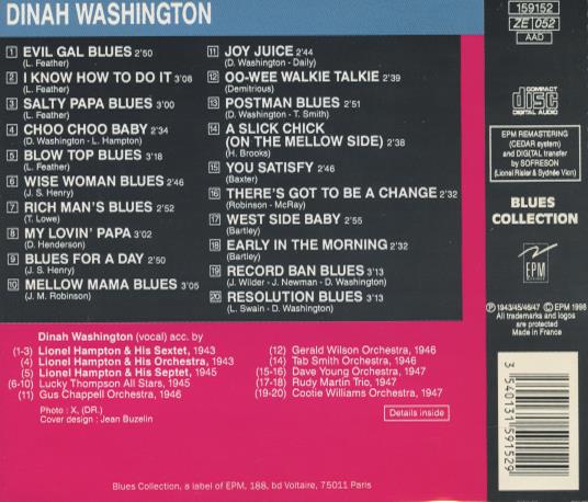Dinah Washington: The Queen Of The Blues 1943-47 MUSIC AUDIO CD jazz 1998 France
