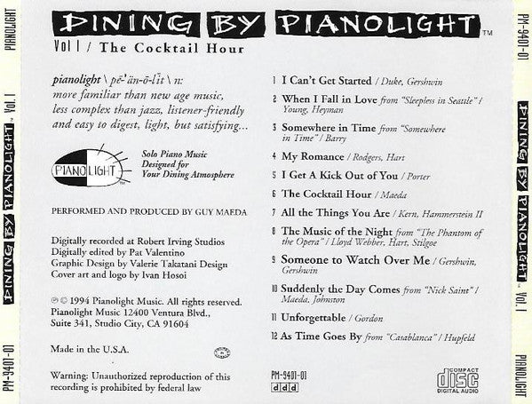 Guy Maeda: Dining By Pianolight MUSIC AUDIO CD jazz pop soul piano 1994 cocktail