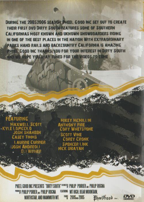 In the exhilarating winter season of 2005-2006, Pheel Good Inc embarked on a creative journey with the ambitious goal of producing their inaugural DVD. This cinematic venture, titled "Dirty South," emerged as a testament to the vibrant snowboarding culture thriving in Southern California during that period. The project set out to showcase the talents of both well-established and up-and-coming snowboarders, capturing the essence of the region's dynamic snowboarding community.