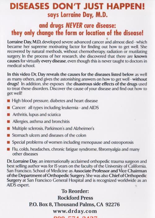 Diseases Don't Just Happen! DVD VIDEO drugs never cure disease! Lorraine Day, MD