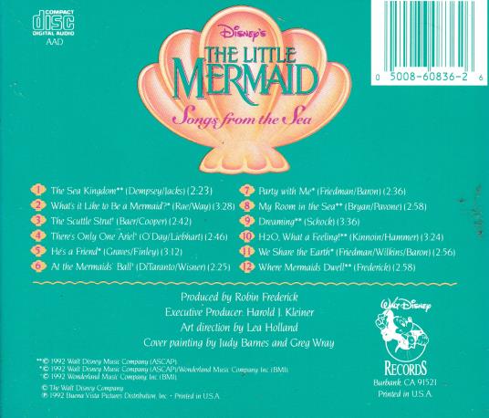 Disney's The Little Mermaid Songs From The Sea MUSIC AUDIO CD movie soundtrack