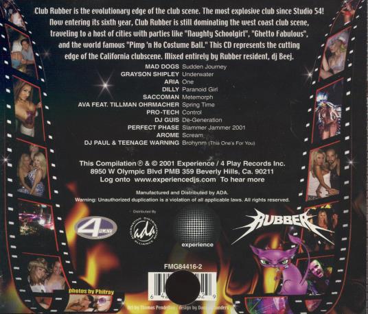 Dj BeeJ: Rubber MUSIC AUDIO CD continuously mixed hard progressive trance! 2001