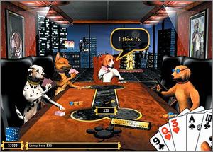Drawing inspiration from the kitschy velvet painting, Dogs Playing Poker allows players to try their luck against a crew of crafty card playing canines. Gamblers can create custom poker games or pick from a litter of favorites including Five Card Draw, Five Card Stud, Seven Card Stud, Texas Hold 'em, Omaha Hold 'em, as well as variations of Five & Dime and Baseball. Eighteen breeds of dogs (and one Tabby cat) will wear their best poker faces as they challenge you within four different environments: Parlor, Kitchen, Board Room and Casino. Dog breeds include the Sheep Dog, Saint Bernard, Golden Retriever, Beagle, and Wiener Dog, with each possessing unique strengths and weaknesses when betting. Players can learn via the tutorial mode, and track their statistics including money won, games played and fold percentage.