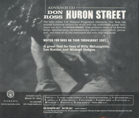 Don Ross: Huron Street Advance Promo w/ Back Artwork