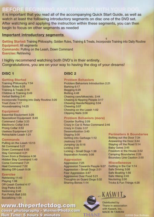 After watching and applying the instruction within these segments, you can then begin to focus on other segments as needed Important introductory segments Getting Started: Training Philosophy, Golden Rules, Training & Treats, Incorporate Training into Daily Routine Equipment: All segments Commands: Pulling on the Leash, Down Command Exercise: Retrieving I highly recommend watching both DVD's in their entirety. Congratulations, you are on your way to having the dog of your dreams!