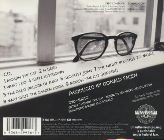 DVD-AUDIO: Entire 'Morph the Cat' album in advanced resolution surround sound and stereo. Disc content includes Dolby Digital and 5.1 surround sound. Produced by Donald Fagen.